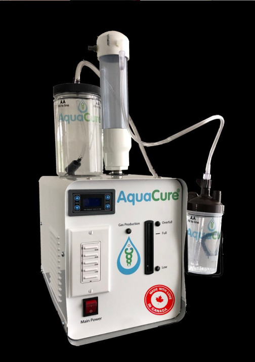 The AquaCure electrolyzer makes a gas that contains hydrogen, oxygen and negatively charged electrically expanded water plasma. The inventor calls this gas mixture HydrOxy.